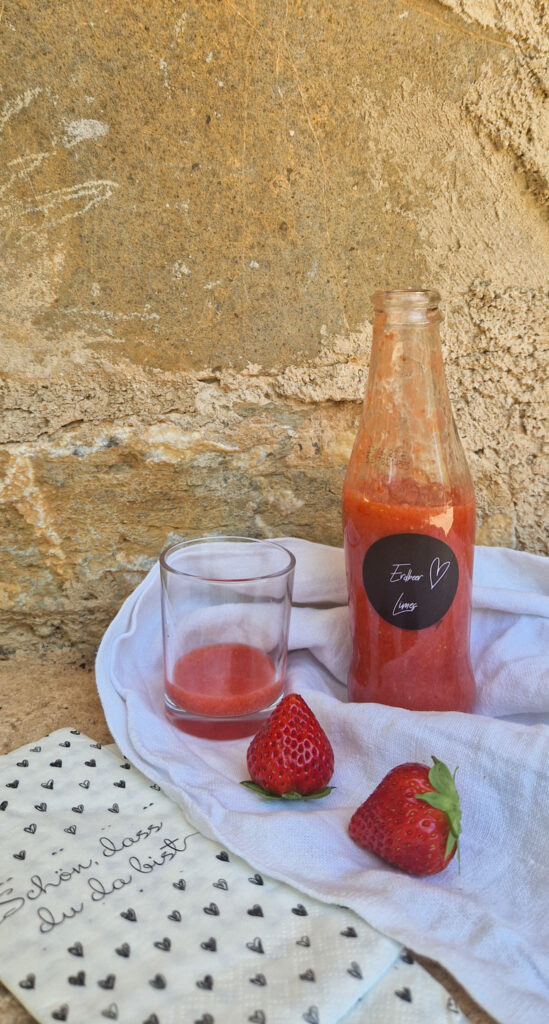 Als Erdbeer Flaschenetiketten eignen sich die Formate 68 x 98 mm für 0,75 l Flaschen, 47 x 60 mm und 60 mm rund für 500 ml Flaschen sowie 30 x 80 mm für kleine Marasca und Opera Flaschen mit 100 ml oder 250 ml.